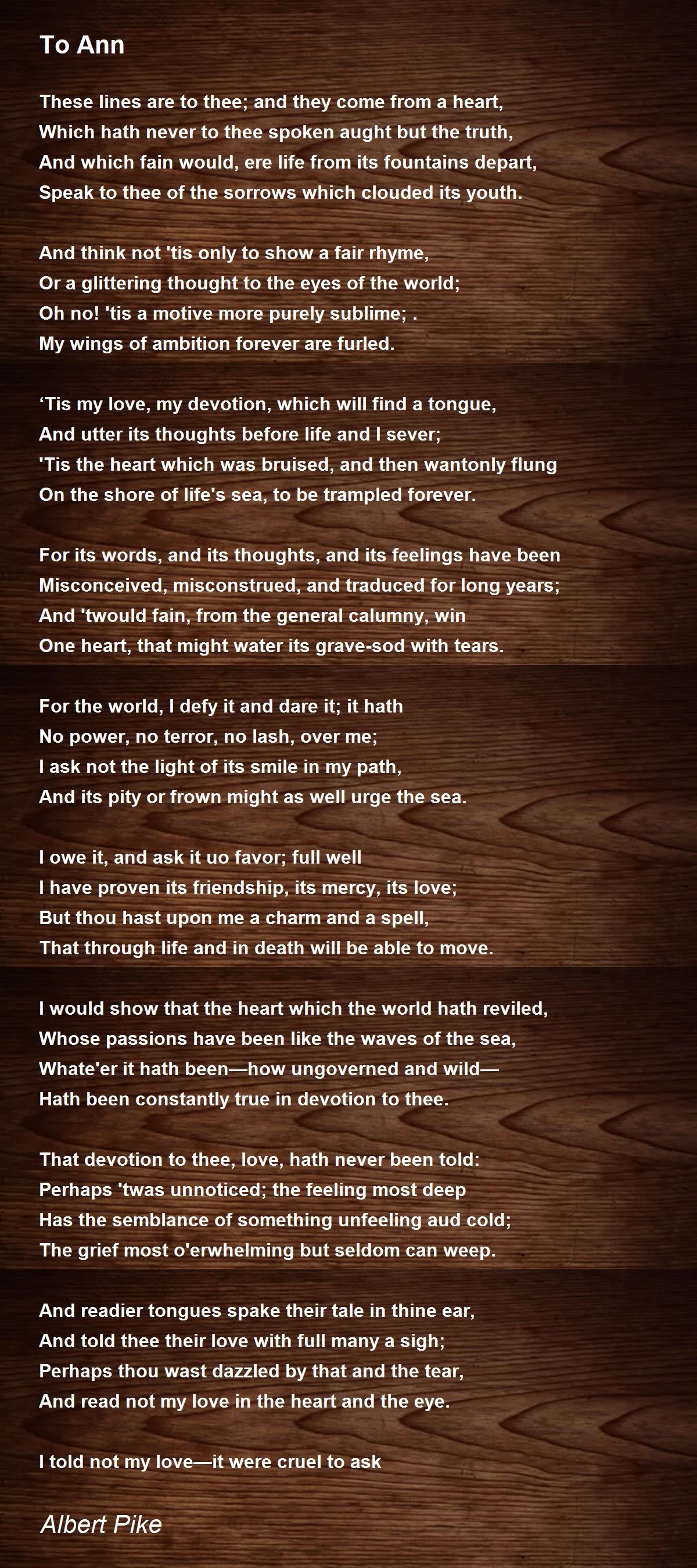 Speak to thee of the sorrows which clouded its youth.