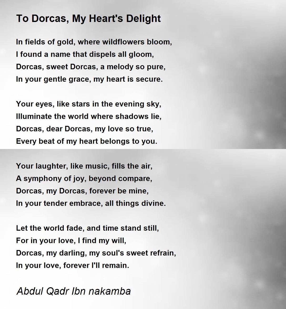 Dorcas, dear Dorcas, my love so true,
