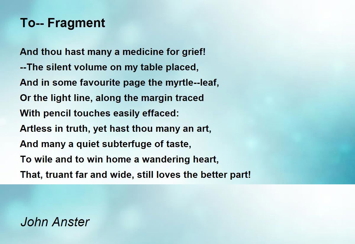 And thou hast many a medicine for grief!