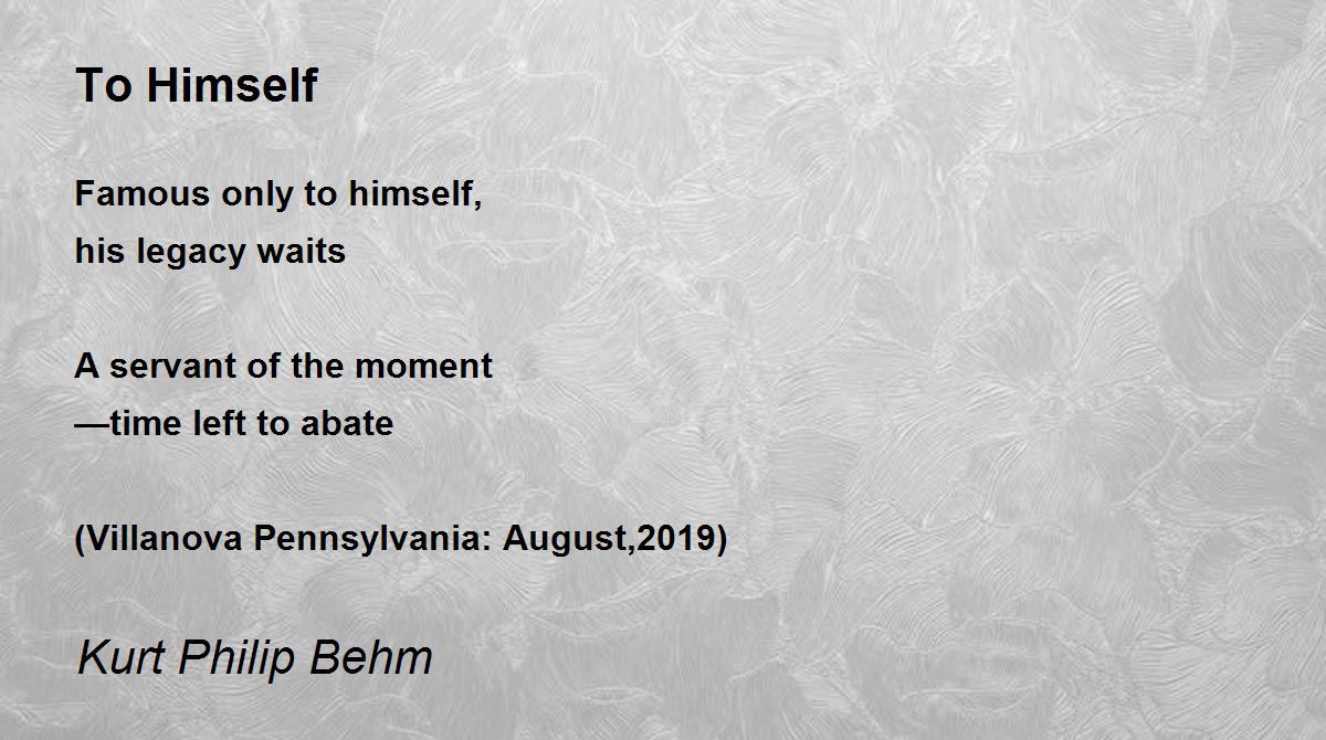 Famous only to himself, his legacy waits A servant of the moment —time left to abate (Villanova Pennsylvania: August,2019)