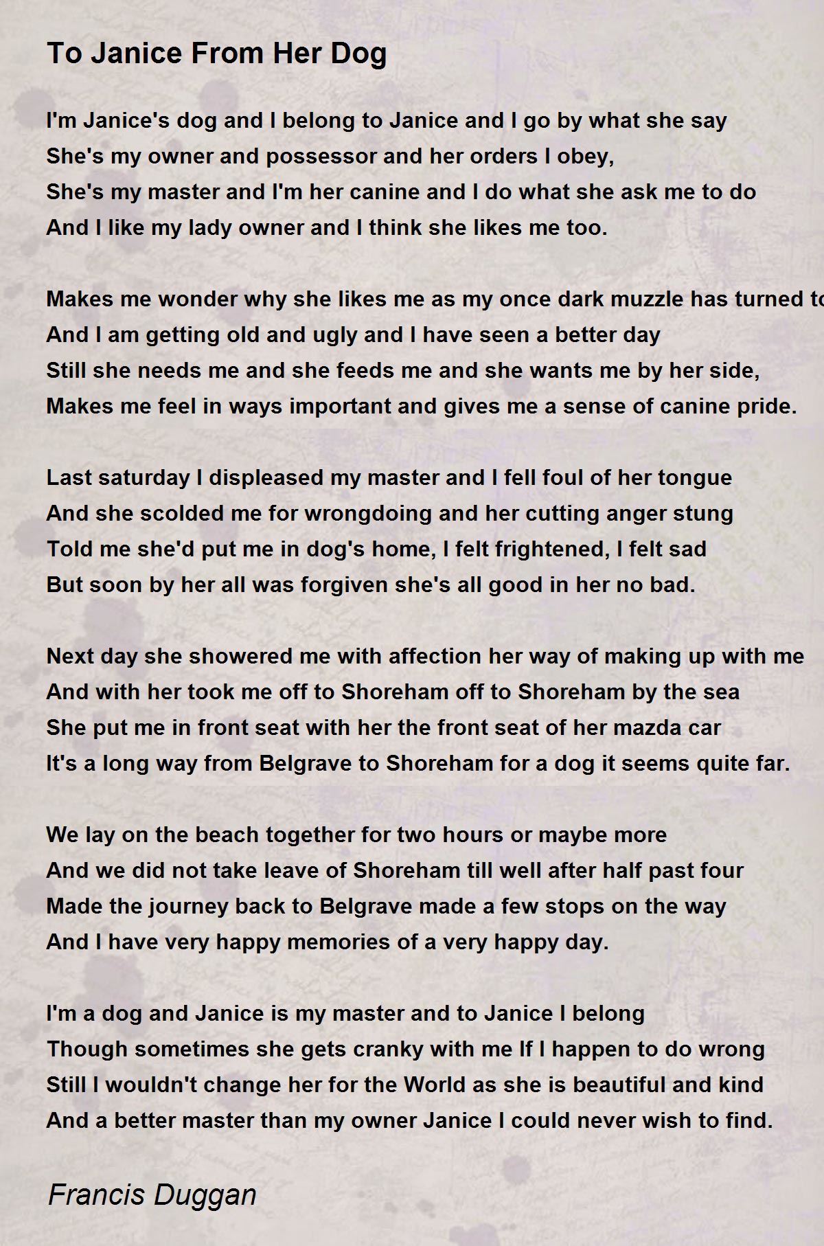 I'm a dog and Janice is my master and to Janice I belong