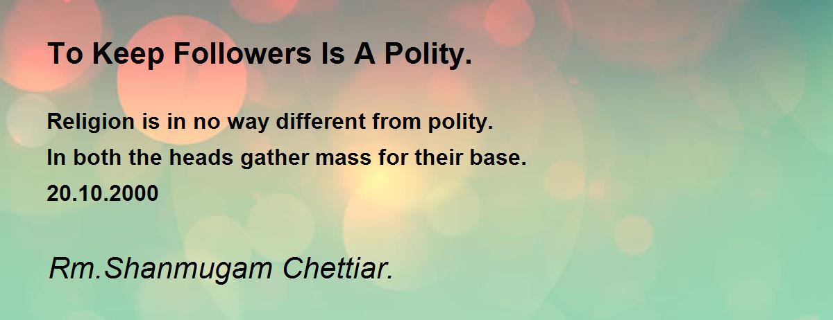 Religion is in no way different from polity. In both the heads gather mass for their base. 20.10.2000
