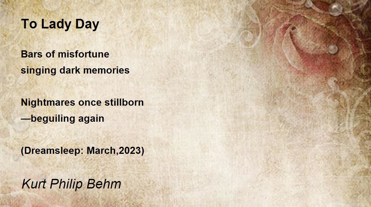 Bars of misfortune singing dark memories Nightmares once stillborn —beguiling again (Dreamsleep: March,2023)