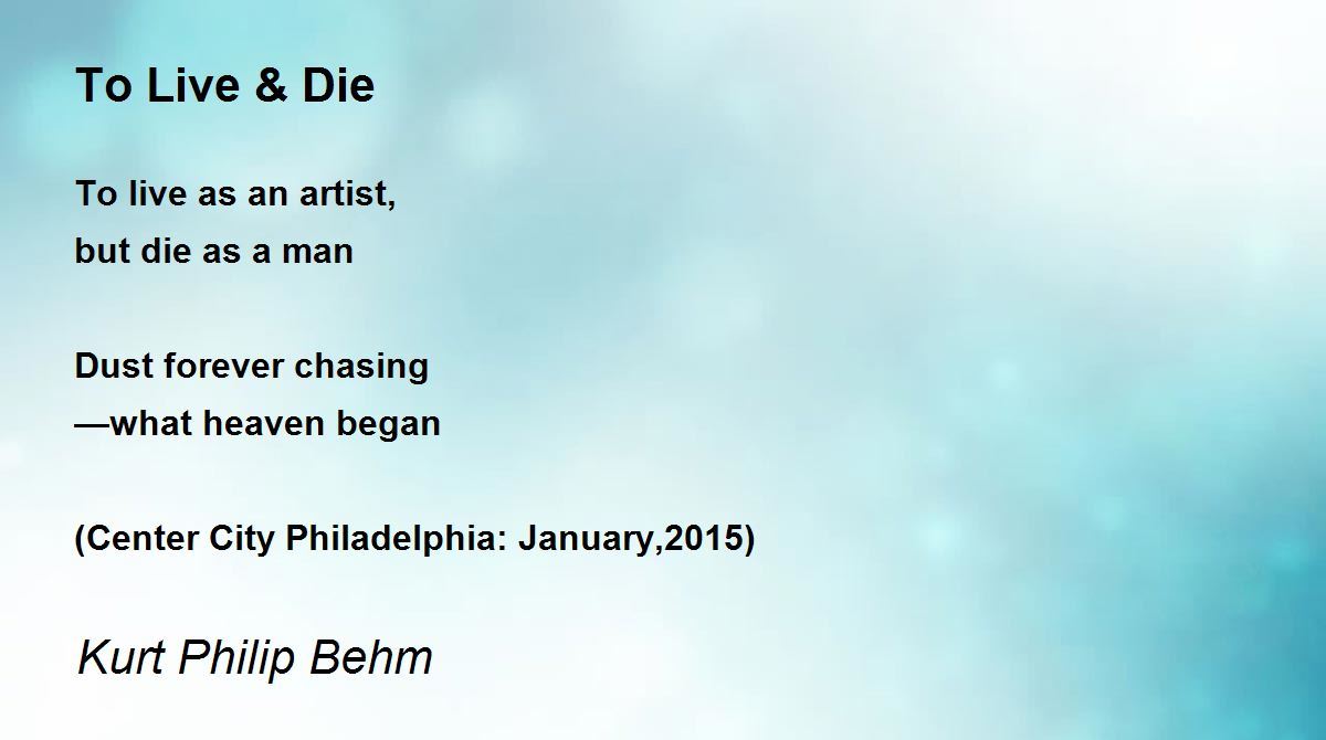 To live as an artist, but die as a man Dust forever chasing —what heaven began (Center City Philadelphia: January,2015)