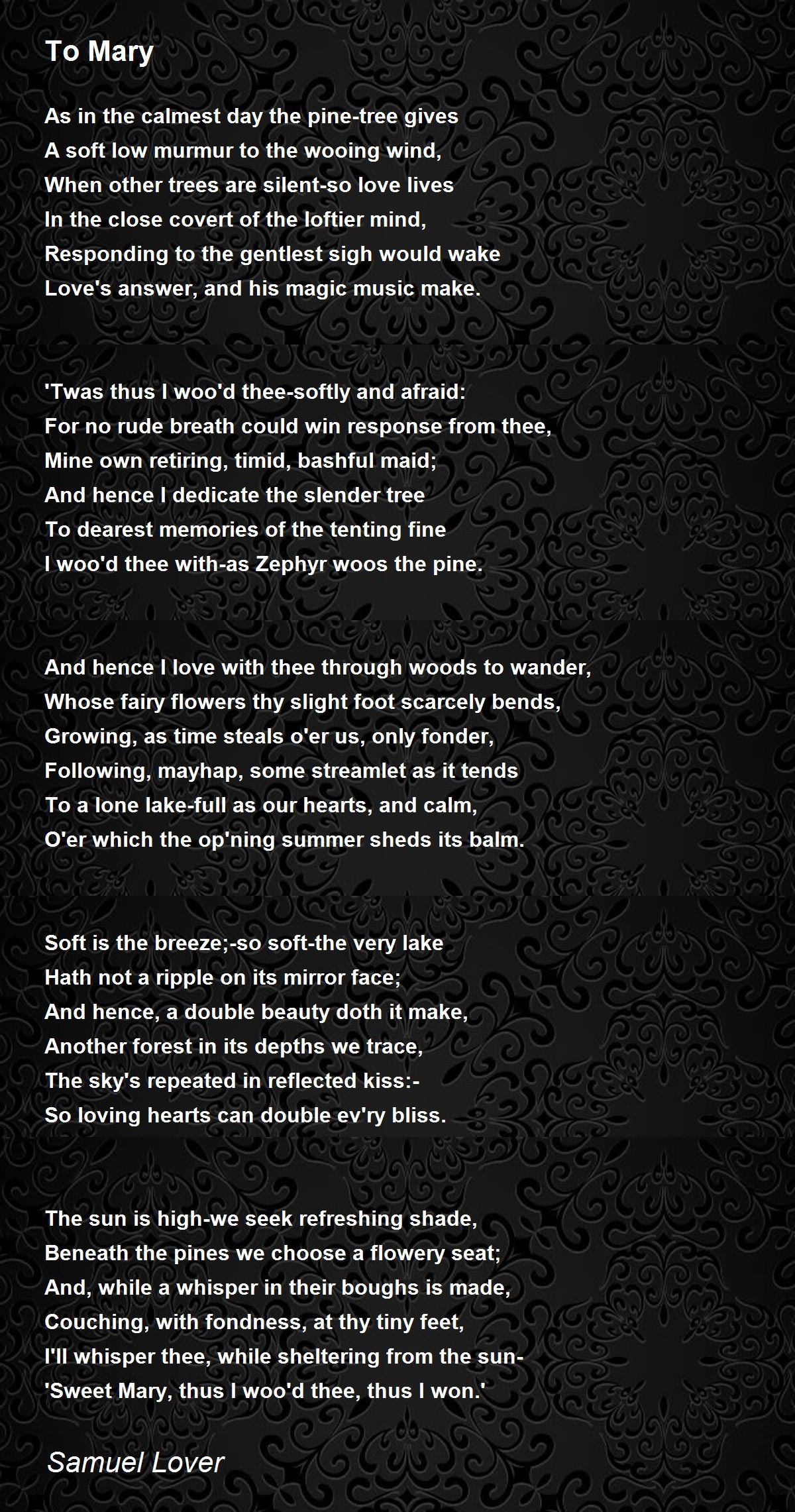 'Sweet Mary, thus I woo'd thee, thus I won.'