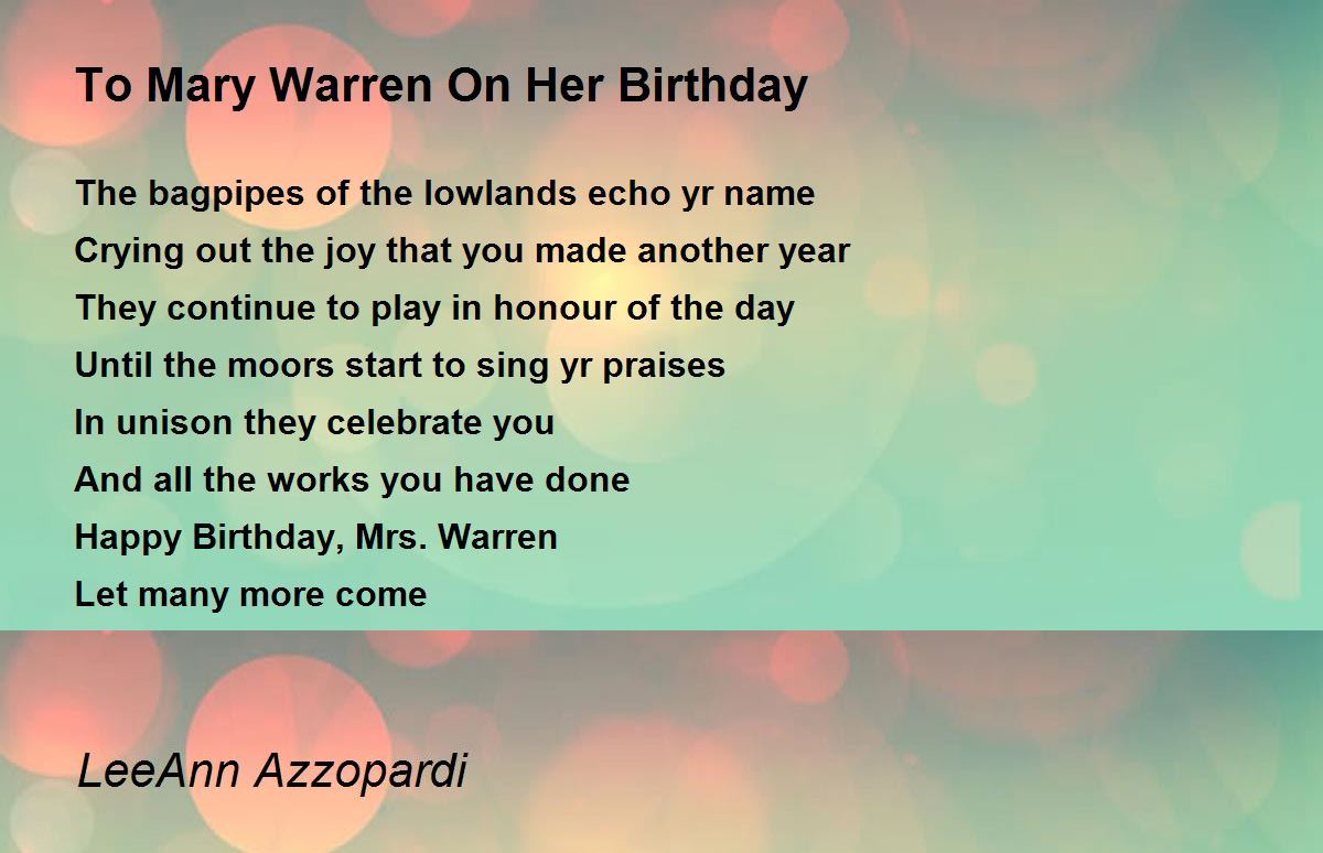 Happy Birthday, Mrs. Warren