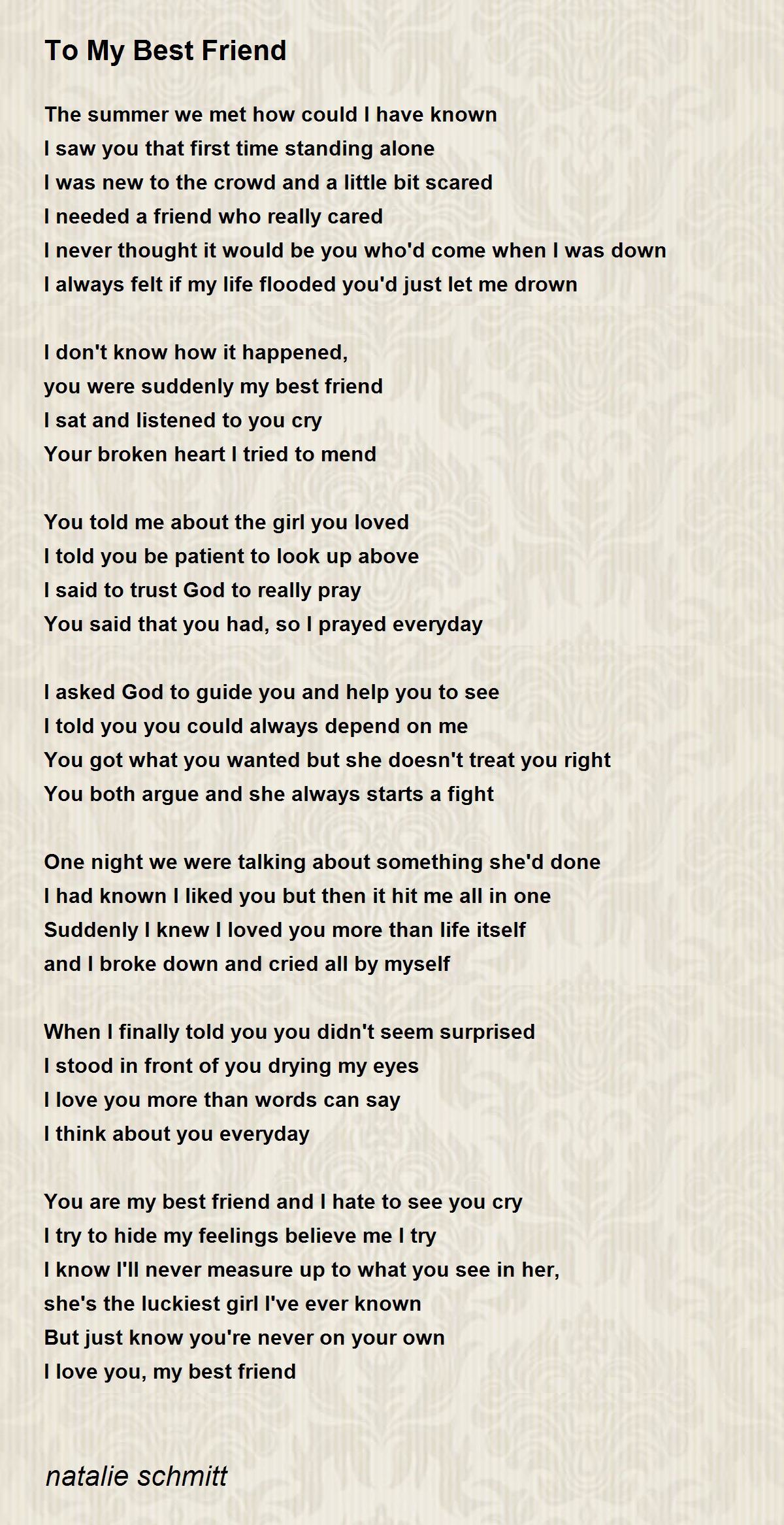 You are my best friend and I hate to see you cry