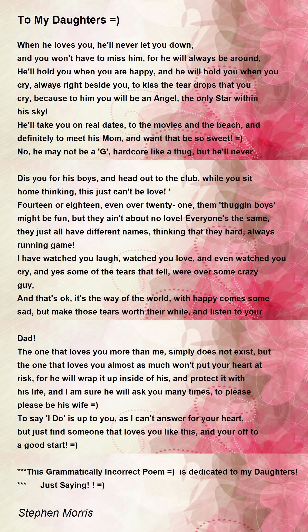 ***This Grammatically Incorrect Poem =) is dedicated to my Daughters! *** Just Saying! ! =)
