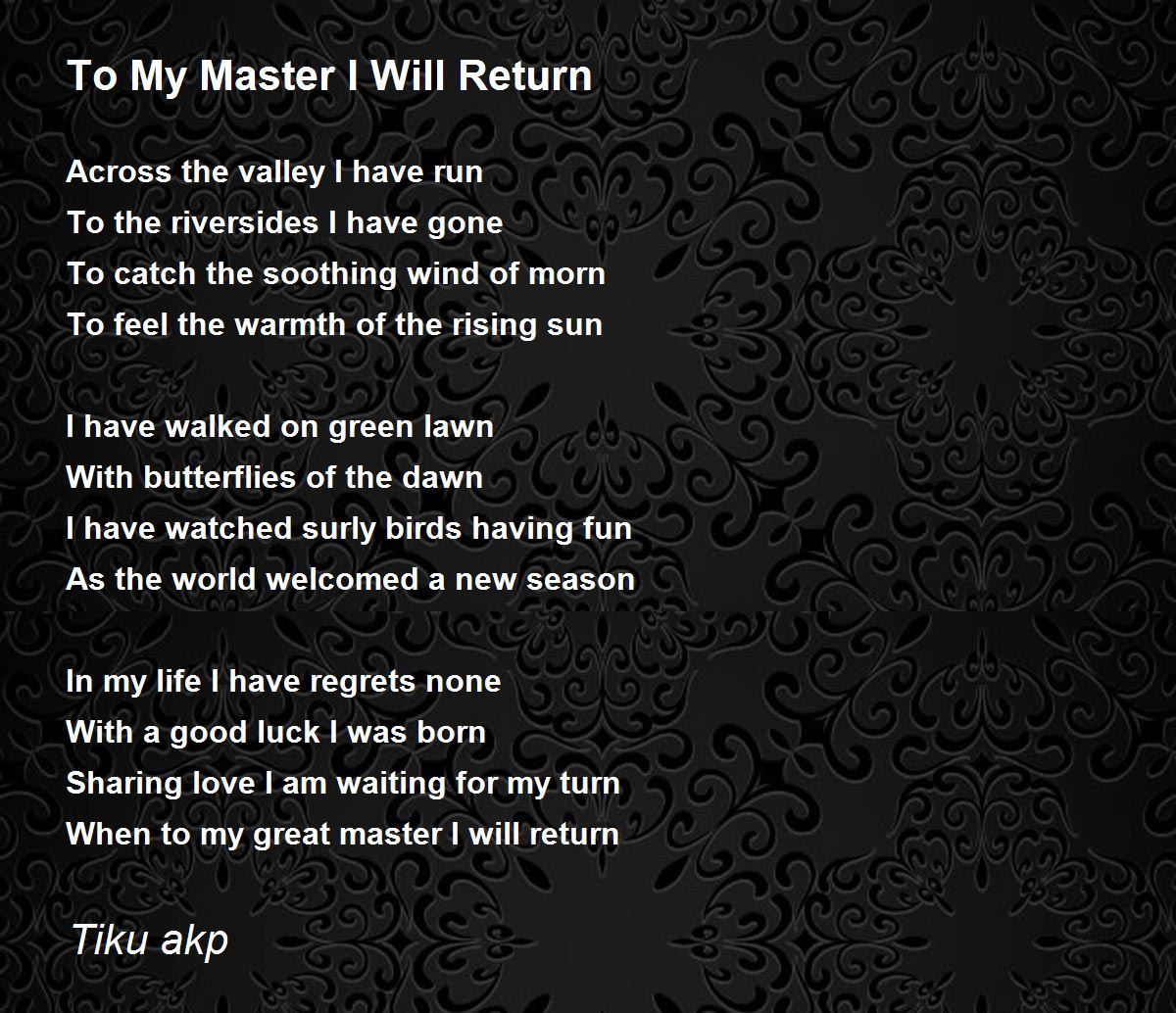 In my life I have regrets none With a good luck I was born Sharing love I am waiting for my turn When to my great master I will return