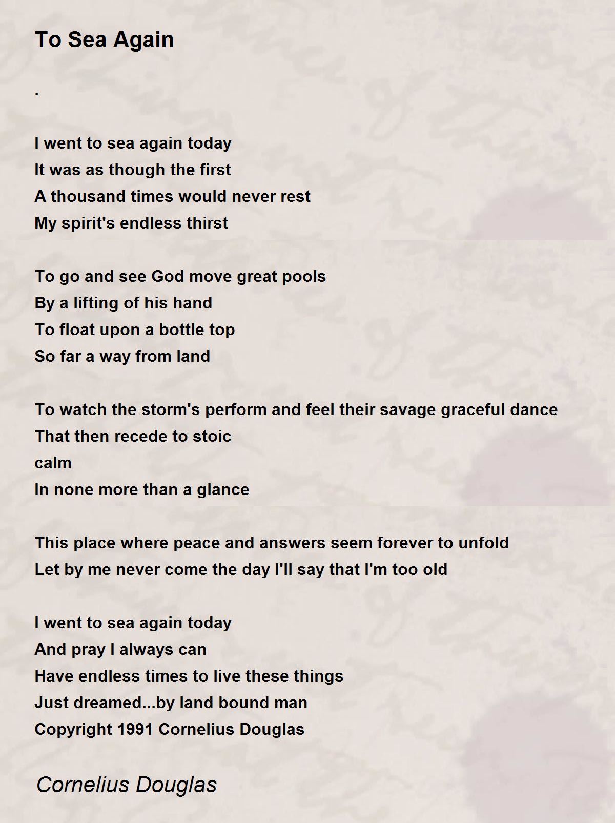 Looks like the sea has got you turned sideways! Good luck in getting straightened out. (Nice poem.)