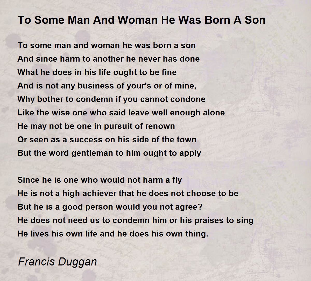 To some man and woman he was born a son