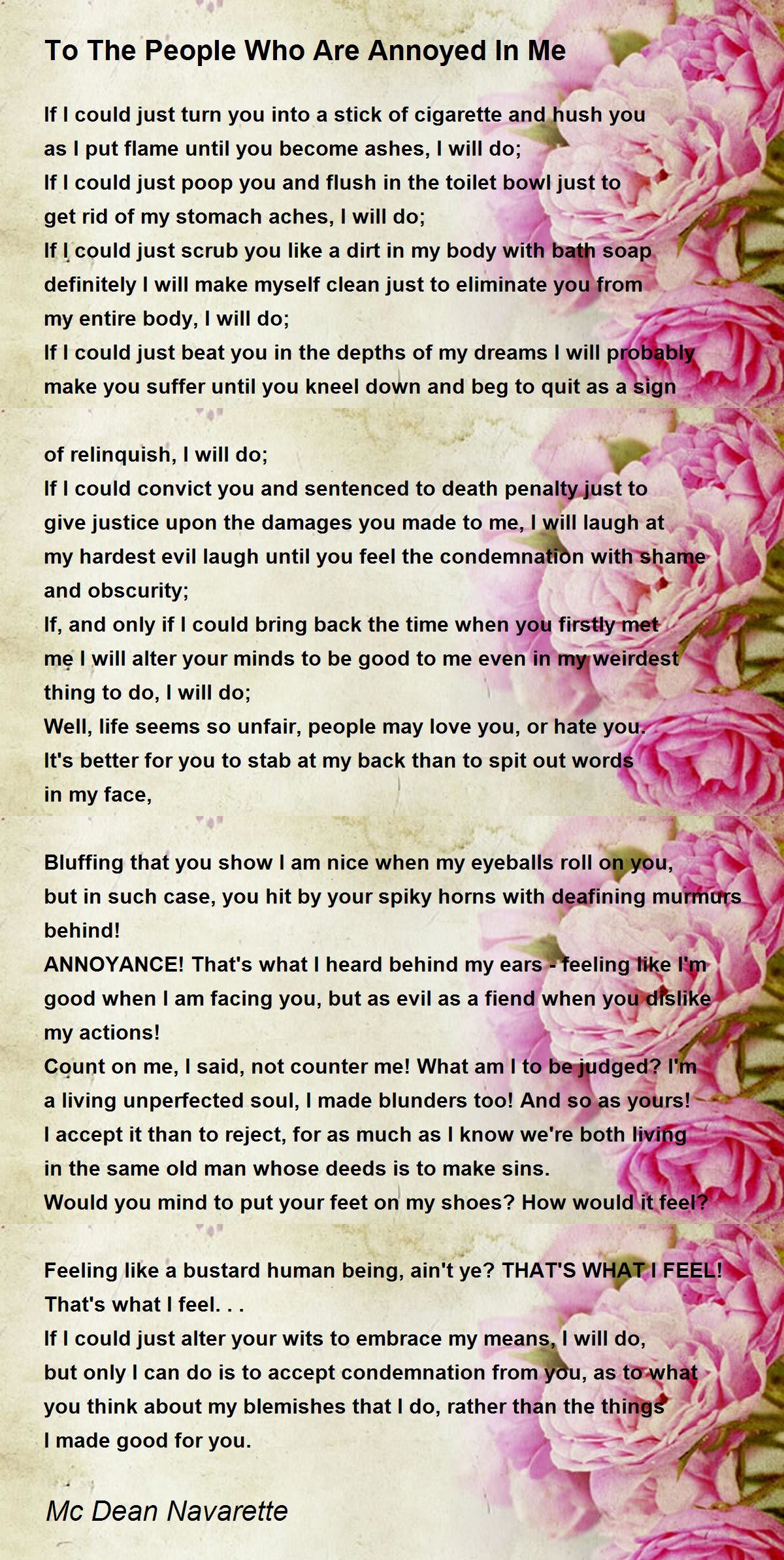 ANNOYANCE! That's what I heard behind my ears - feeling like I'm good when I am facing you, but as evil as a fiend when you dislike my actions!
