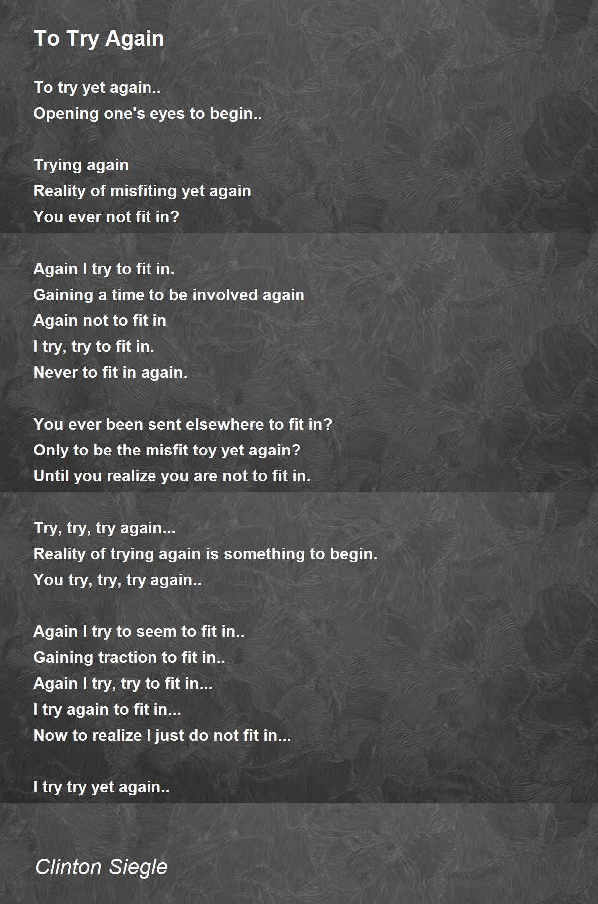 Again I try, try to fit in...