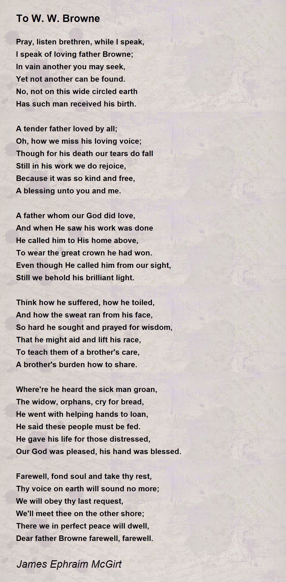 I speak of loving father Browne;
