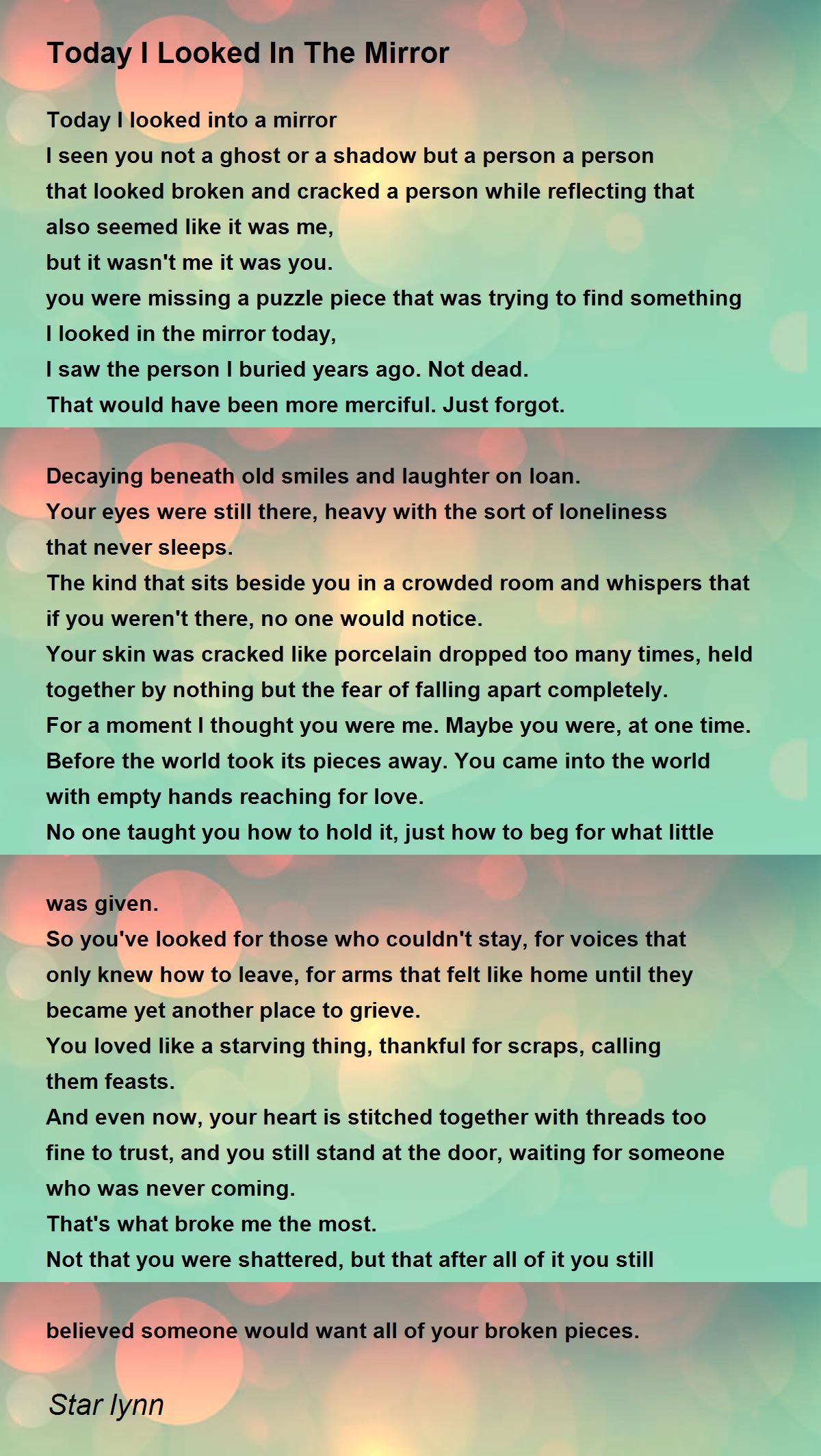Not that you were shattered, but that after all of it you still believed someone would want all of your broken pieces.