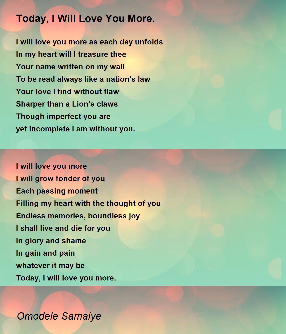 Today, I will love you more.