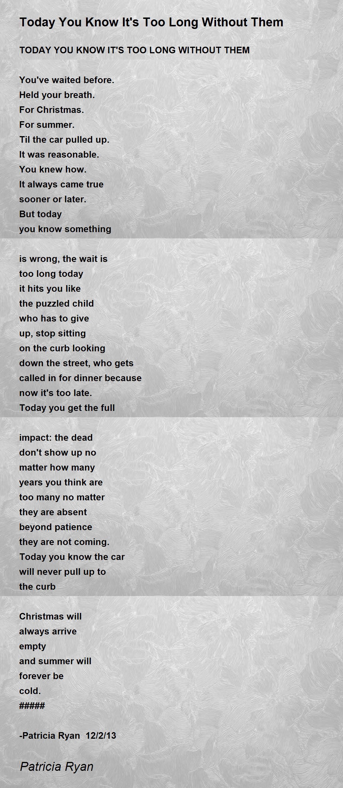 TODAY YOU KNOW IT'S TOO LONG WITHOUT THEM
