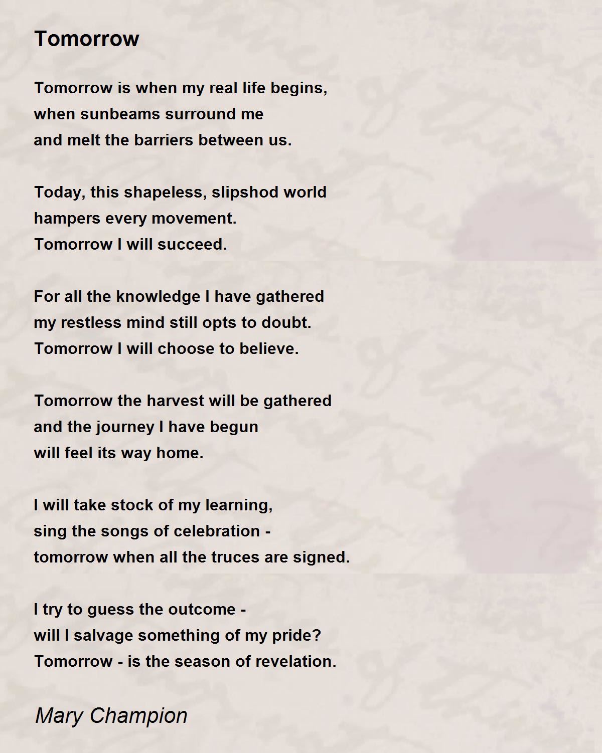 Tomorrow I will succeed.