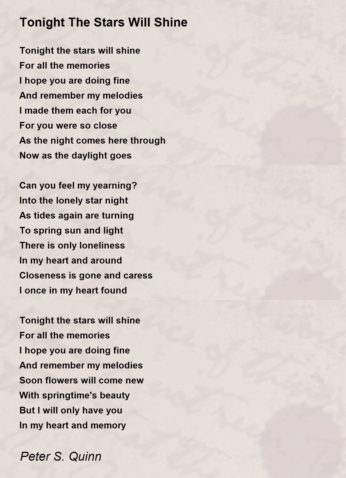 Stars will shine tonight with great hope and responsibility. This poem is an excellent poem very well penned.
