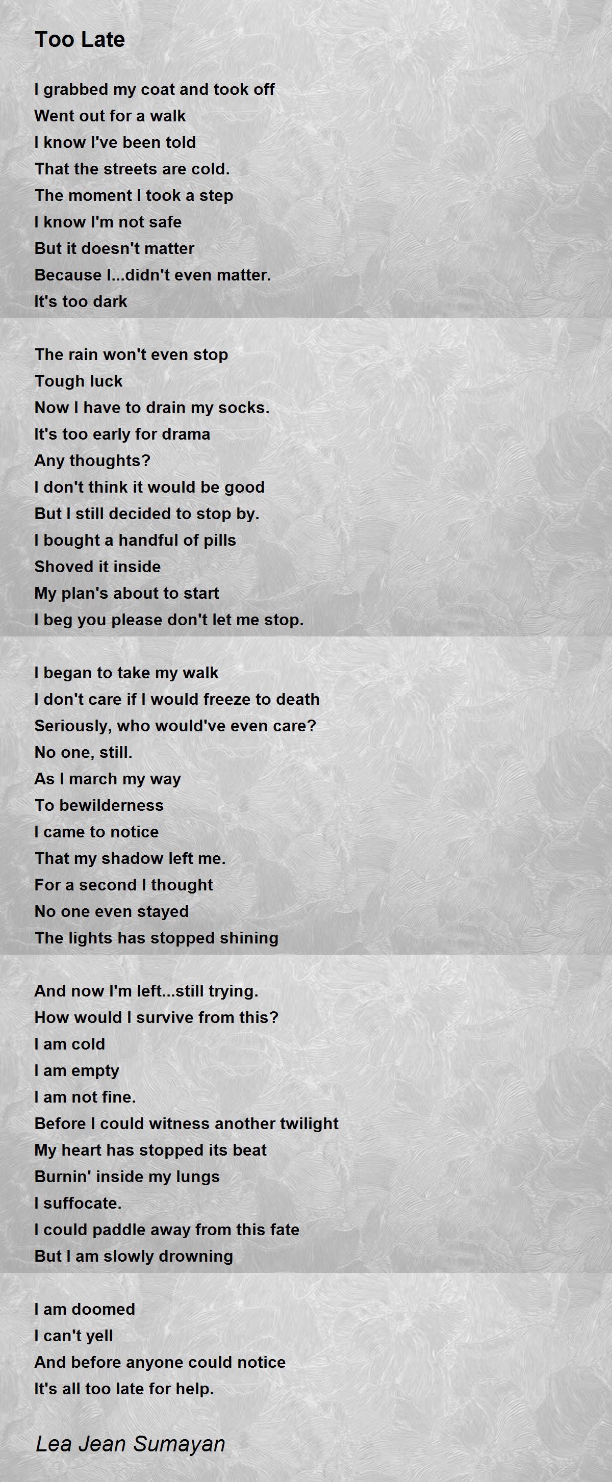 It's all too late for help.