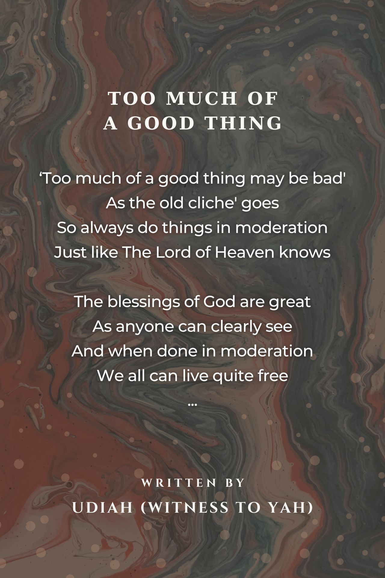 So always do things in moderation