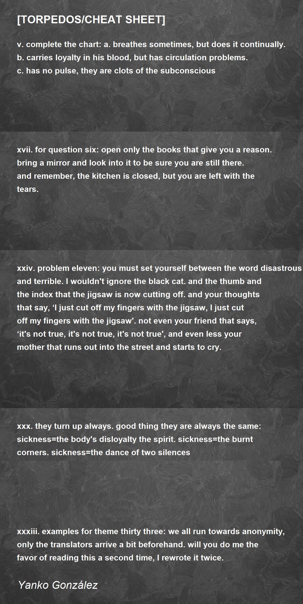 xxxiii. examples for theme thirty three: we all run towards anonymity, only the translators arrive a bit beforehand. will you do me the favor of reading this a second time, I rewrote it twice.