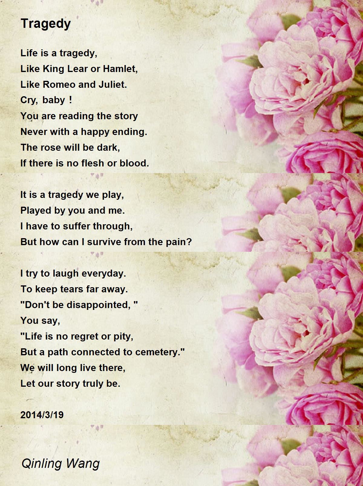 Oh! Life is not only this material life that may often be seen us a tragedy. It has higher and further levels after death. Cheer up!