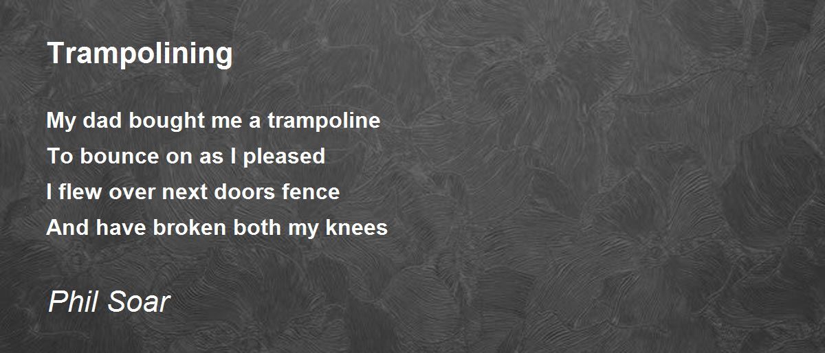 My dad bought me a trampoline To bounce on as I pleased I flew over next doors fence And have broken both my knees