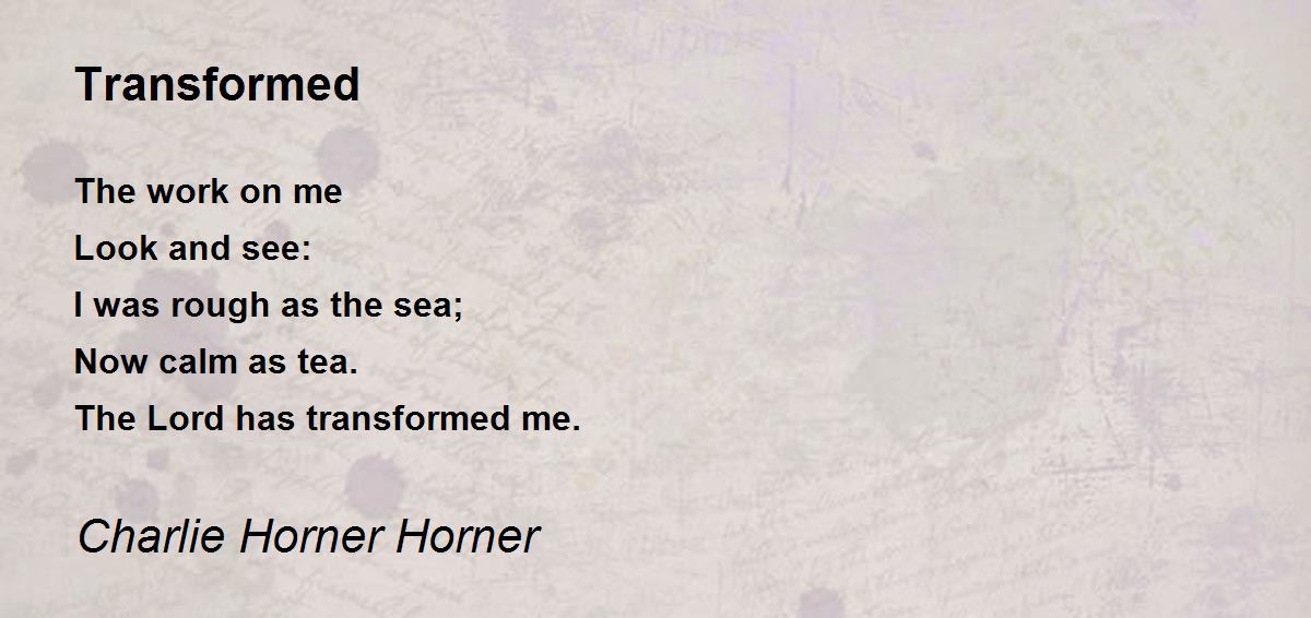 The work on meLook and see: I was rough as the sea; Now calm as tea.The Lord has transformed me.