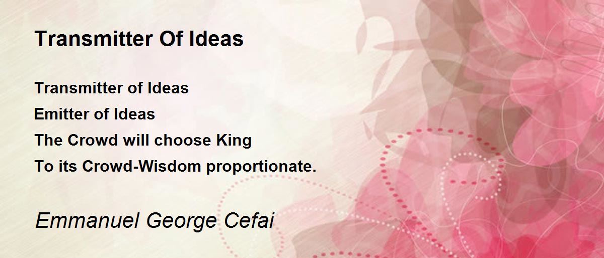 Transmitter of Ideas Emitter of Ideas The Crowd will choose King To its Crowd-Wisdom proportionate.