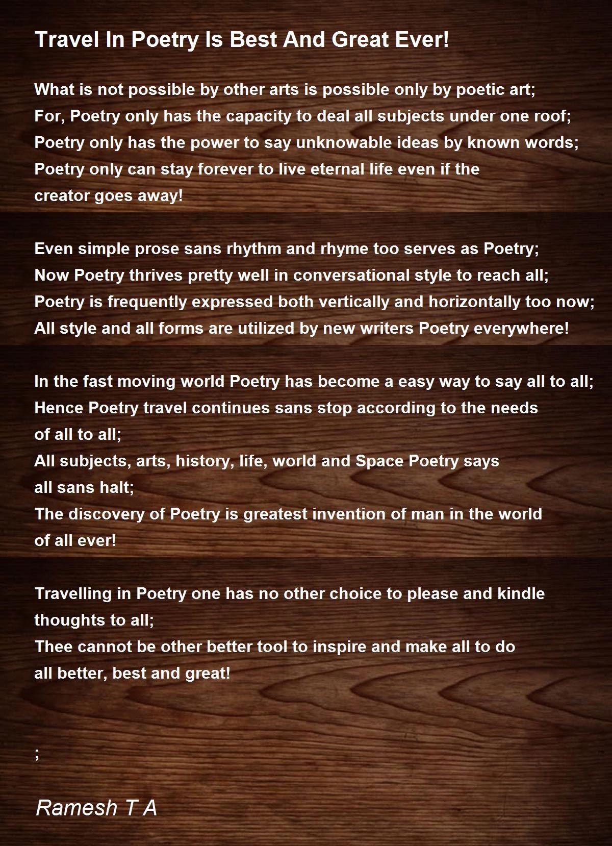 Hence Poetry travel continues sans stop according to the needs of all to all;
