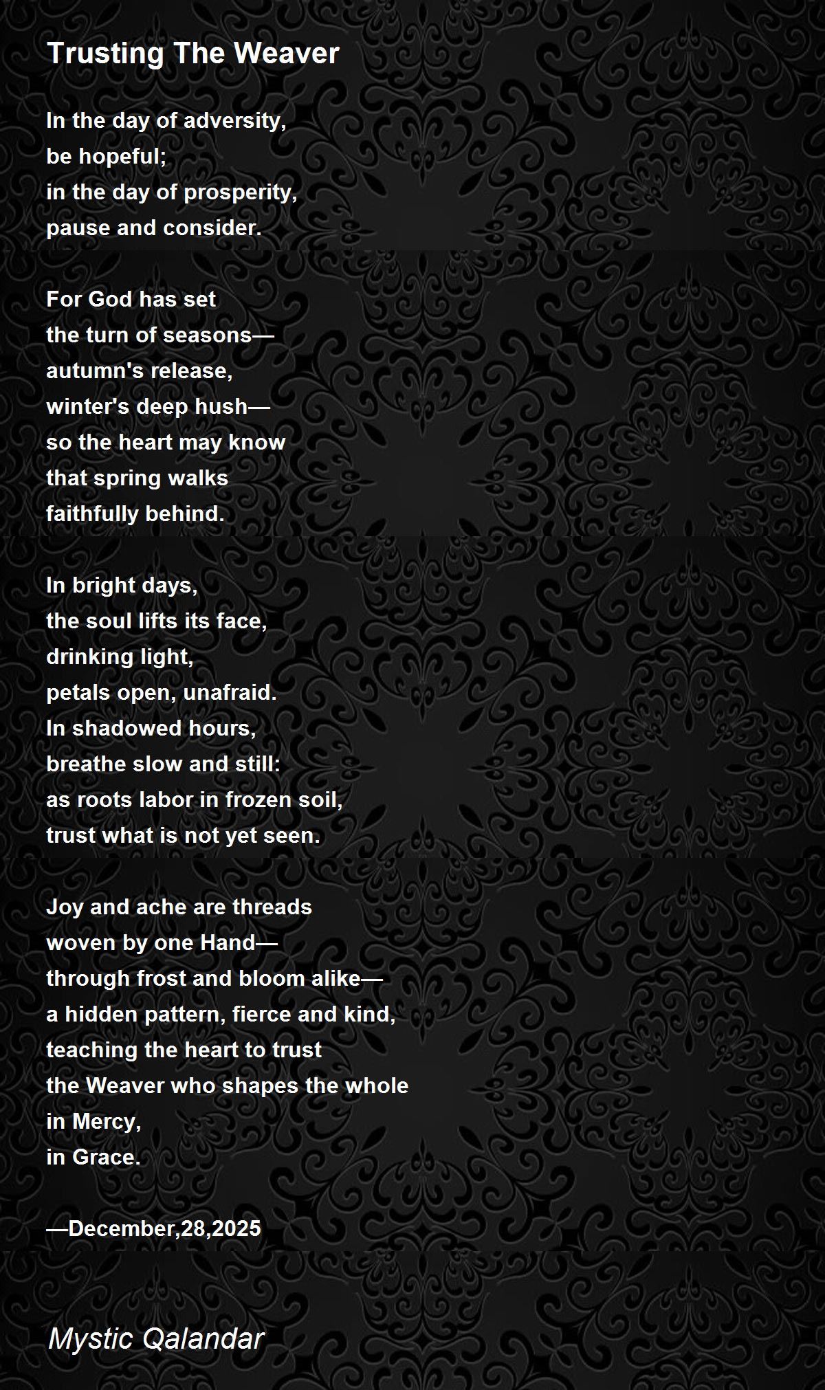 Trusting The Weaver Poem by Mystic Qalandar