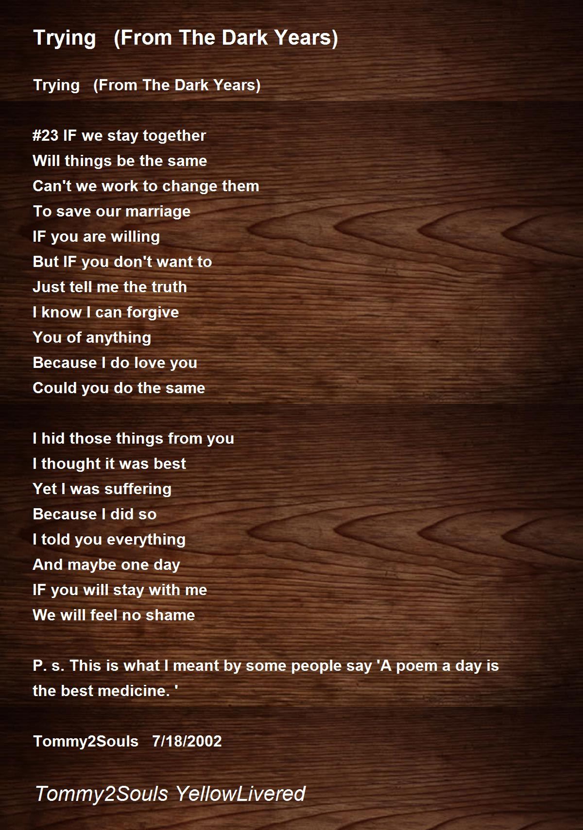 P.s. This is what I meant by some people say 'A poem a day is the best medicine.'