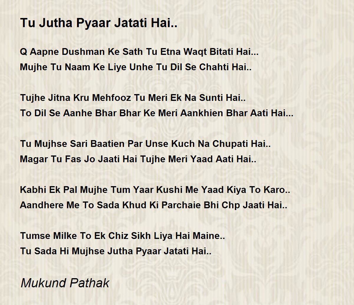 Tu Sada Hi Mujhse Jutha Pyaar Jatati Hai..