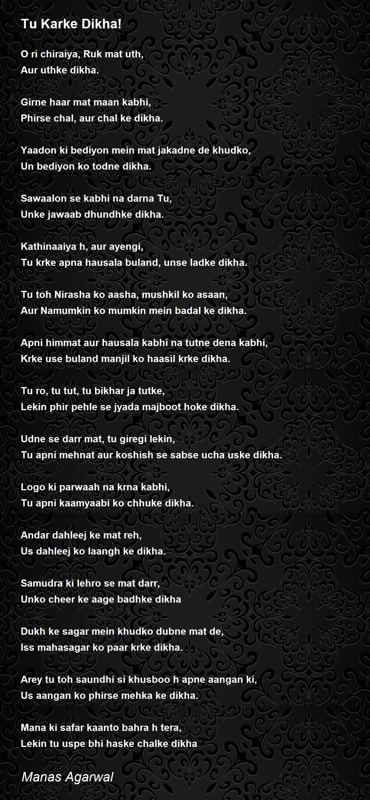 Tu apni kaamyaabi ko chhuke dikha.