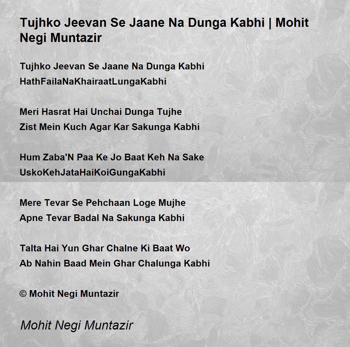 Tujhko Jeevan Se Jaane Na Dunga Kabhi