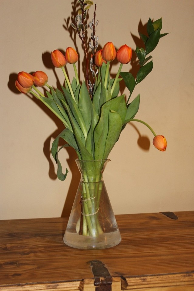 I have set the tulips in a conical flask