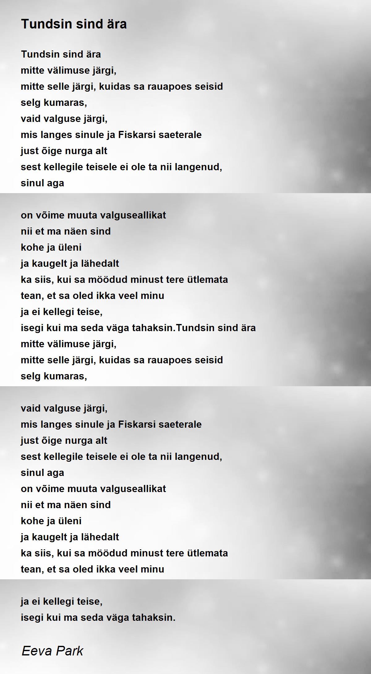 isegi kui ma seda väga tahaksin.Tundsin sind ära