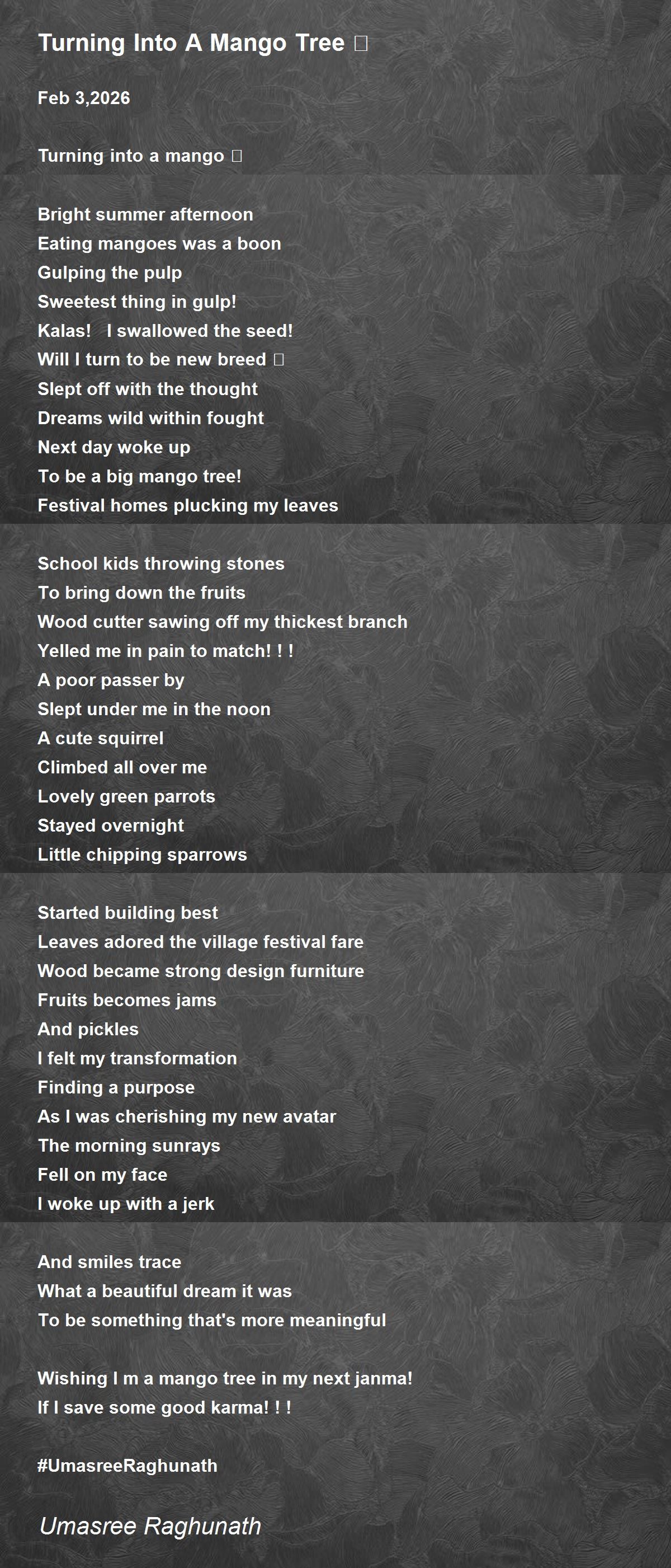 Turning Into A Mango Tree 🌴 Poem by Umasree Raghunath