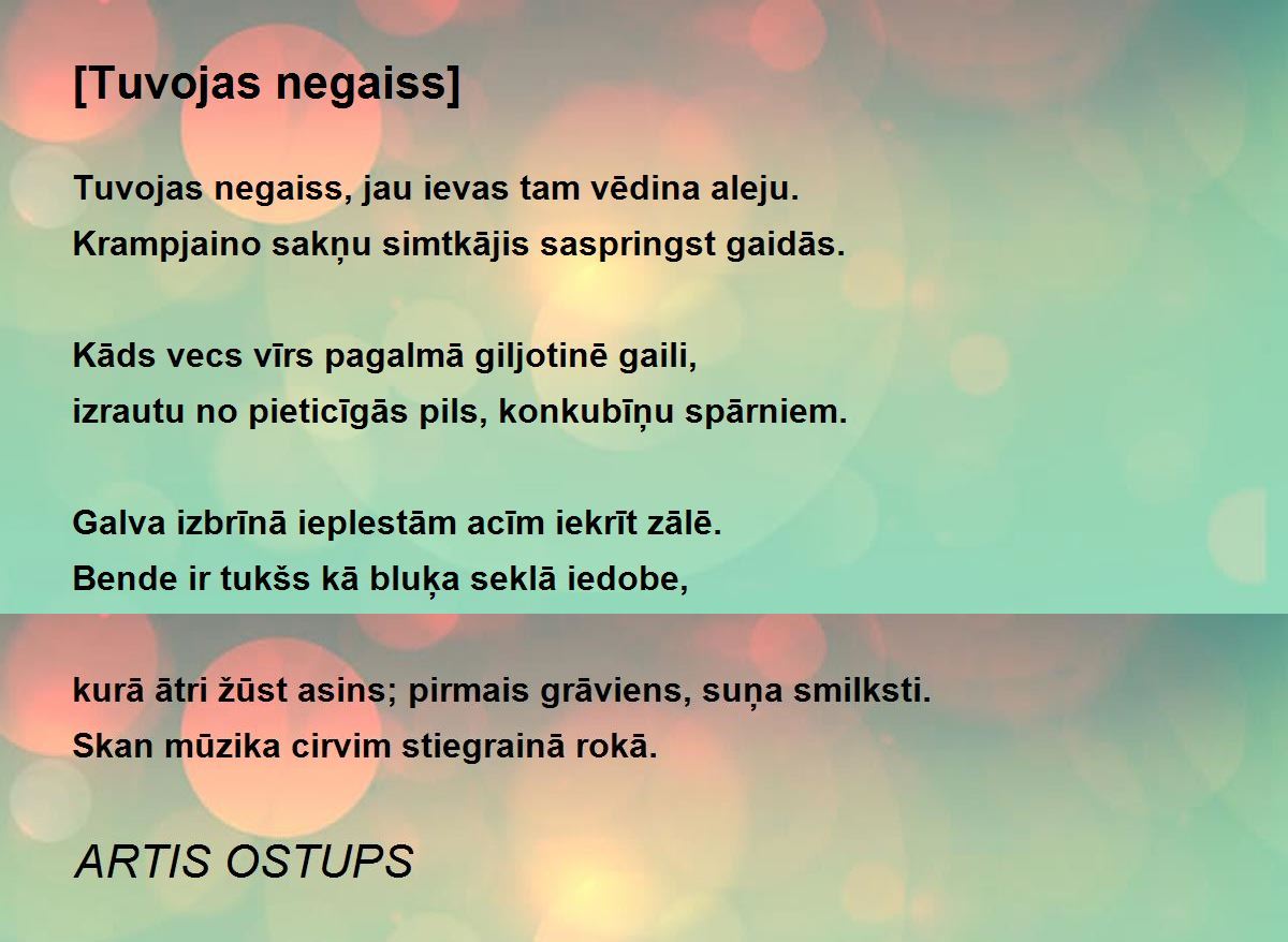 Tuvojas negaiss, jau ievas tam vēdina aleju.