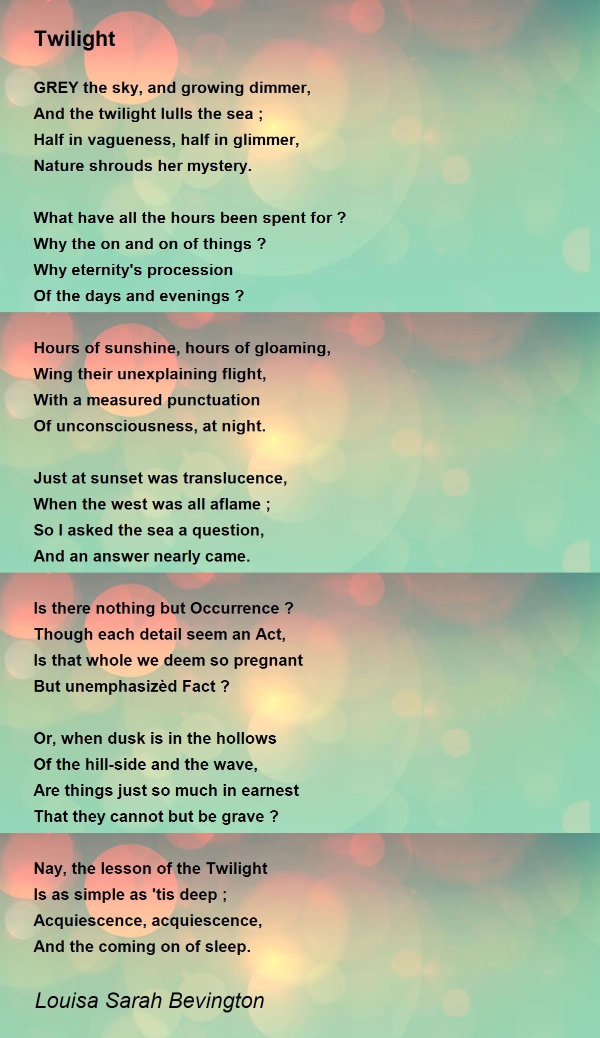 And the twilight lulls the sea ;