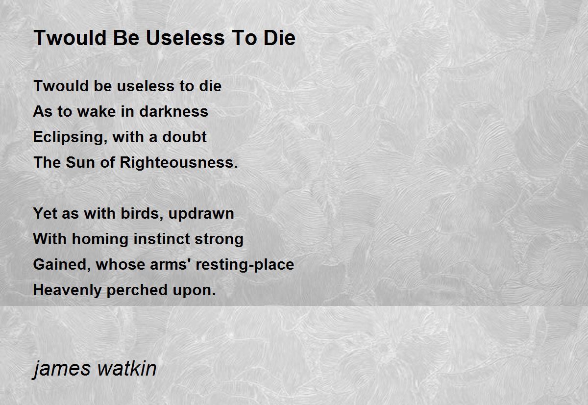 Twould be useless to die
