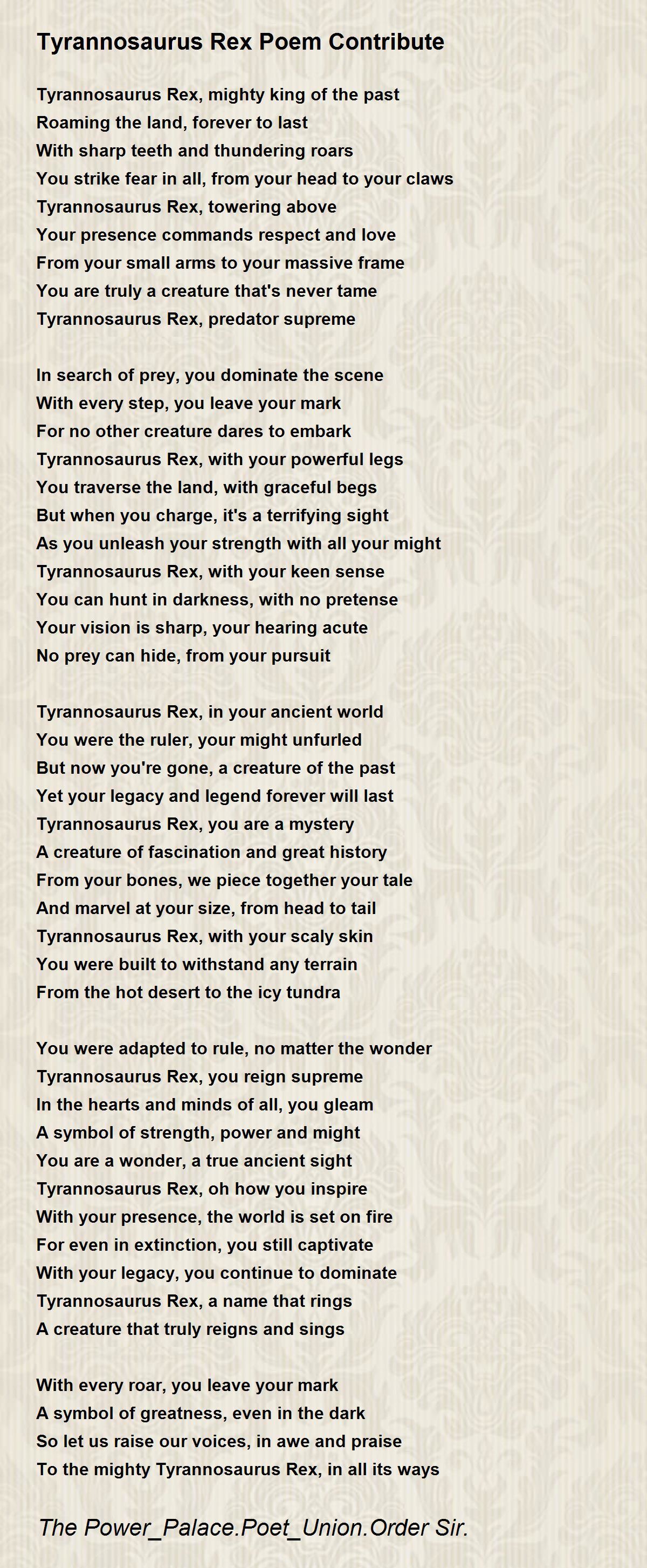 Tyrannosaurus Rex, with your scaly skin