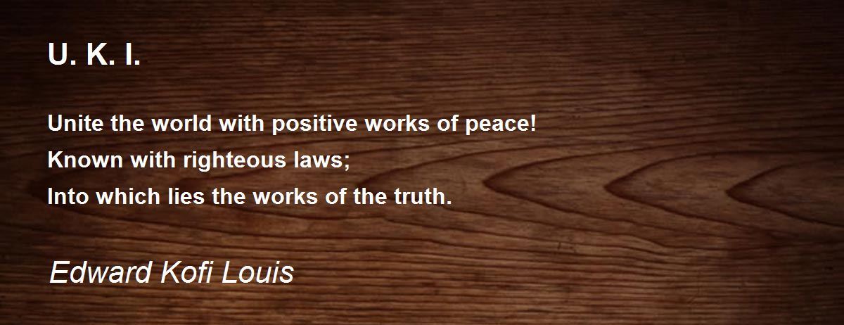Unite the world with positive works of peace! Known with righteous laws; Into which lies the works of the truth.