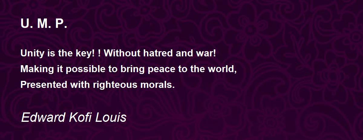 Unity is the key! ! Without hatred and war! Making it possible to bring peace to the world, Presented with righteous morals.