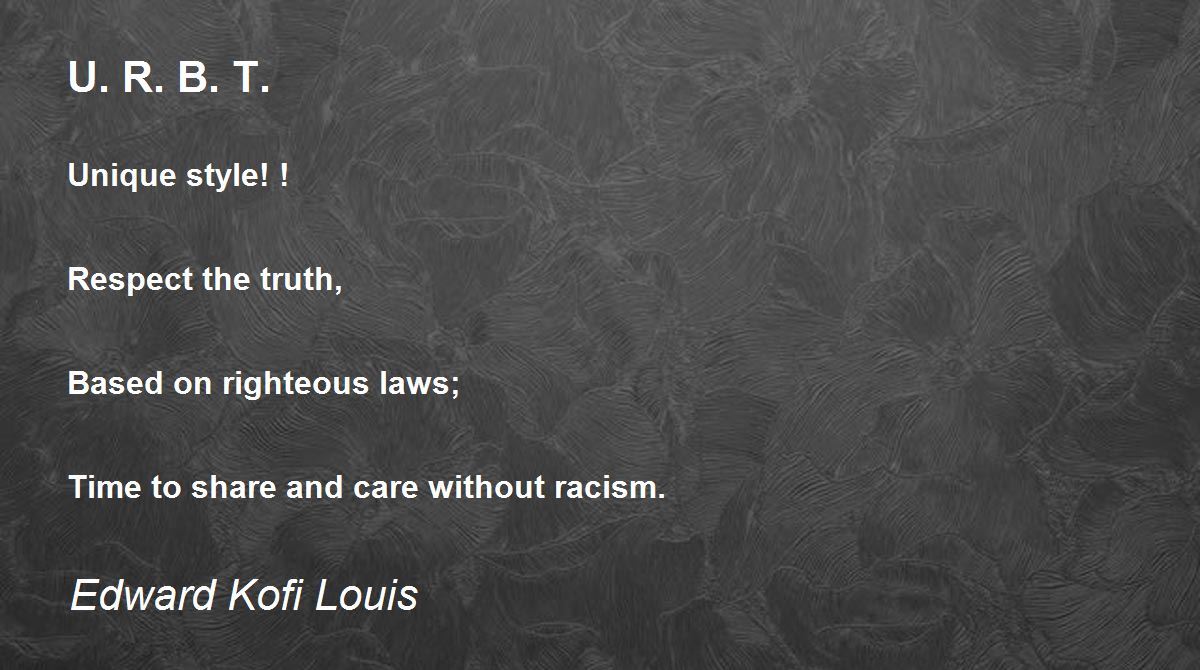 Unique style! ! Respect the truth, Based on righteous laws; Time to share and care without racism.