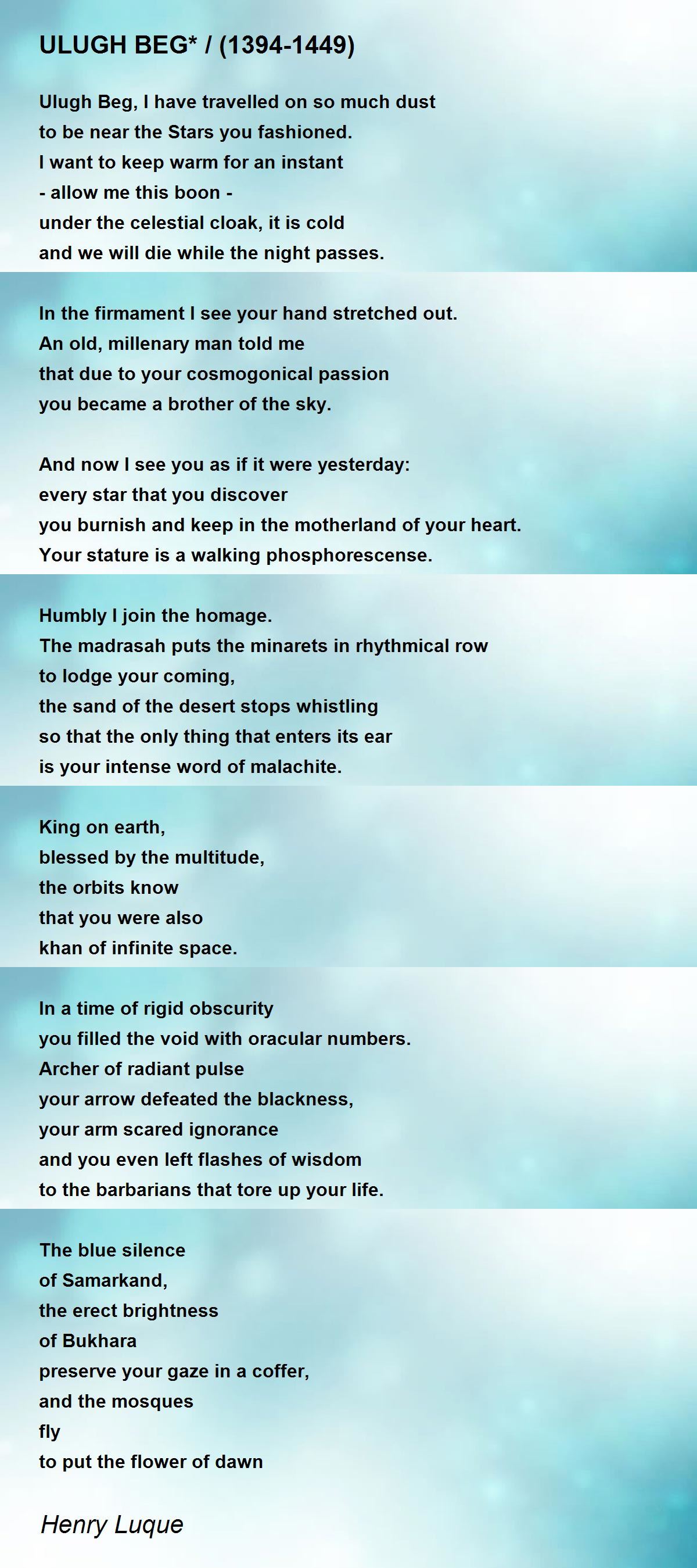 Ulugh Beg, I have travelled on so much dust
