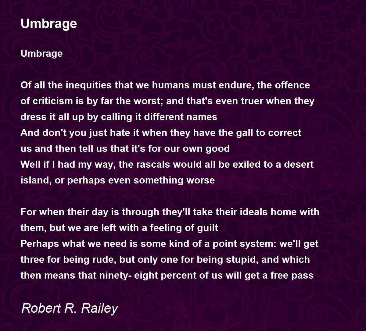Of all the inequities that we humans must endure, the offence of criticism is by far the worst; and that's even truer when they dress it all up by calling it different names