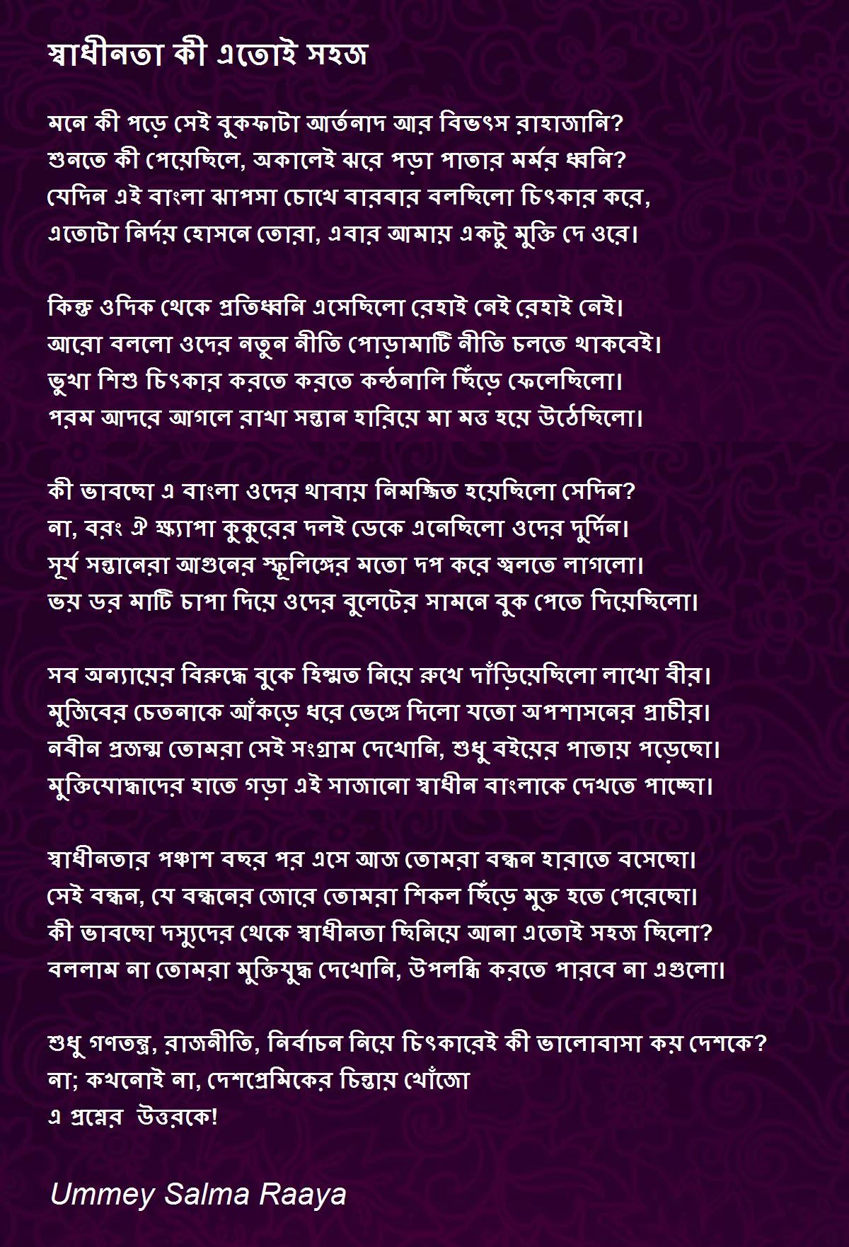 স্বাধীনতার পঞ্চাশ বছর পর এসে আজ তোমরা বন্ধন হারাতে বসেছো।