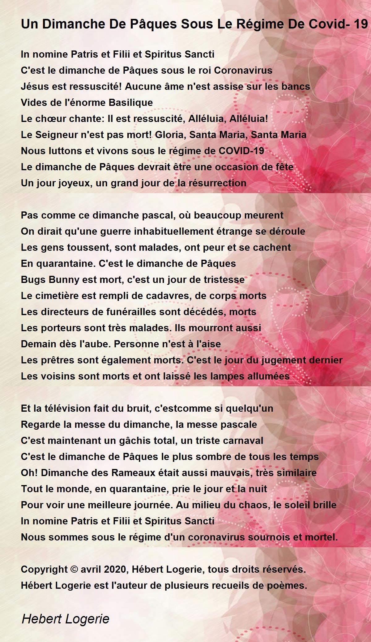 Copyright © avril 2020, Hébert Logerie, tous droits réservés.